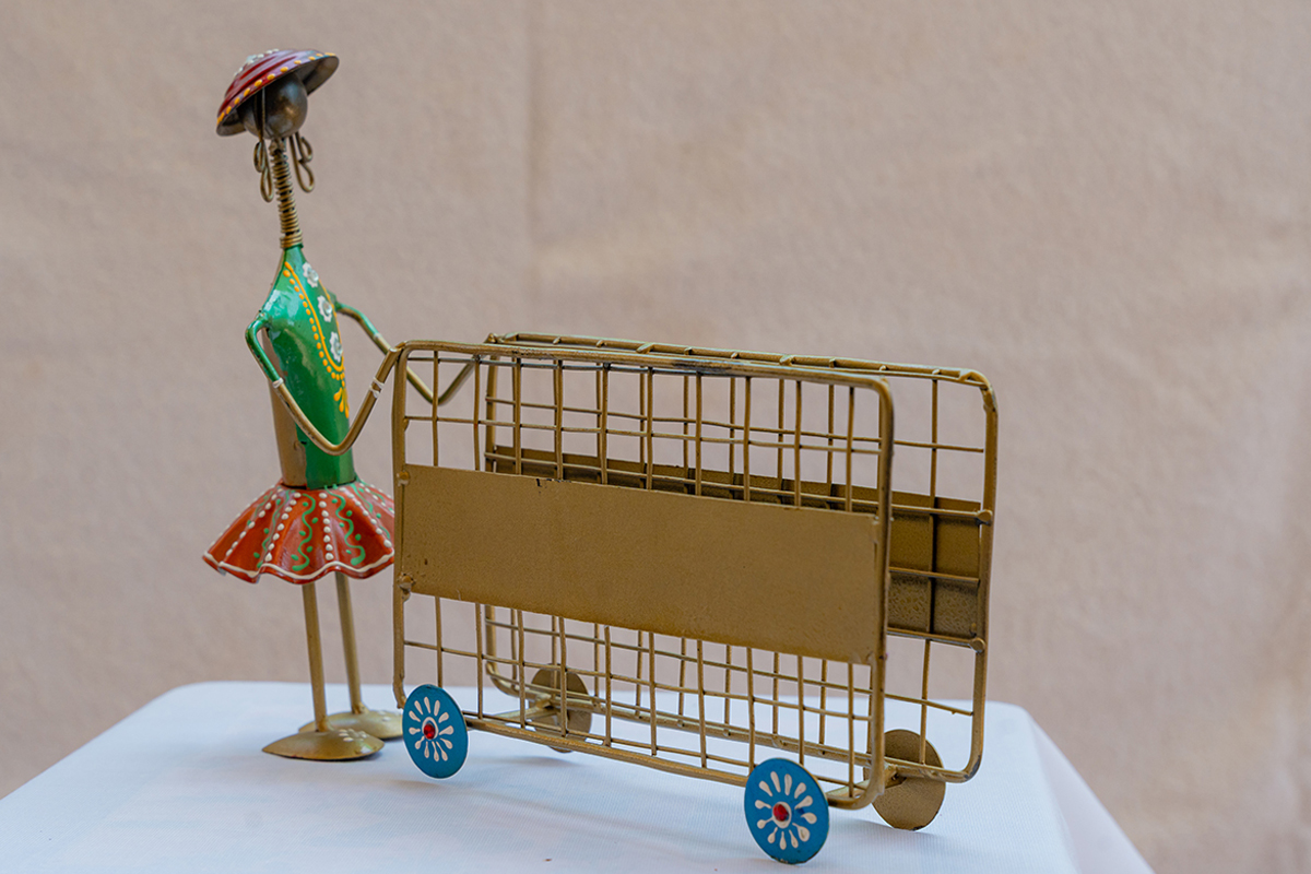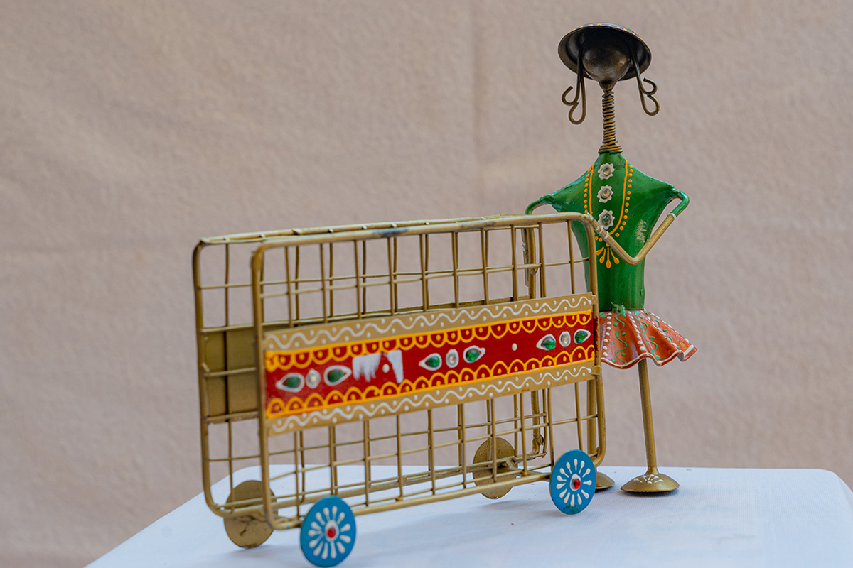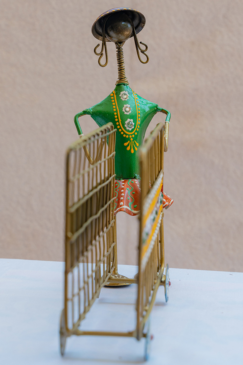 Handcrafted Tribal Metal Figurine with Cart (Tissue Box)